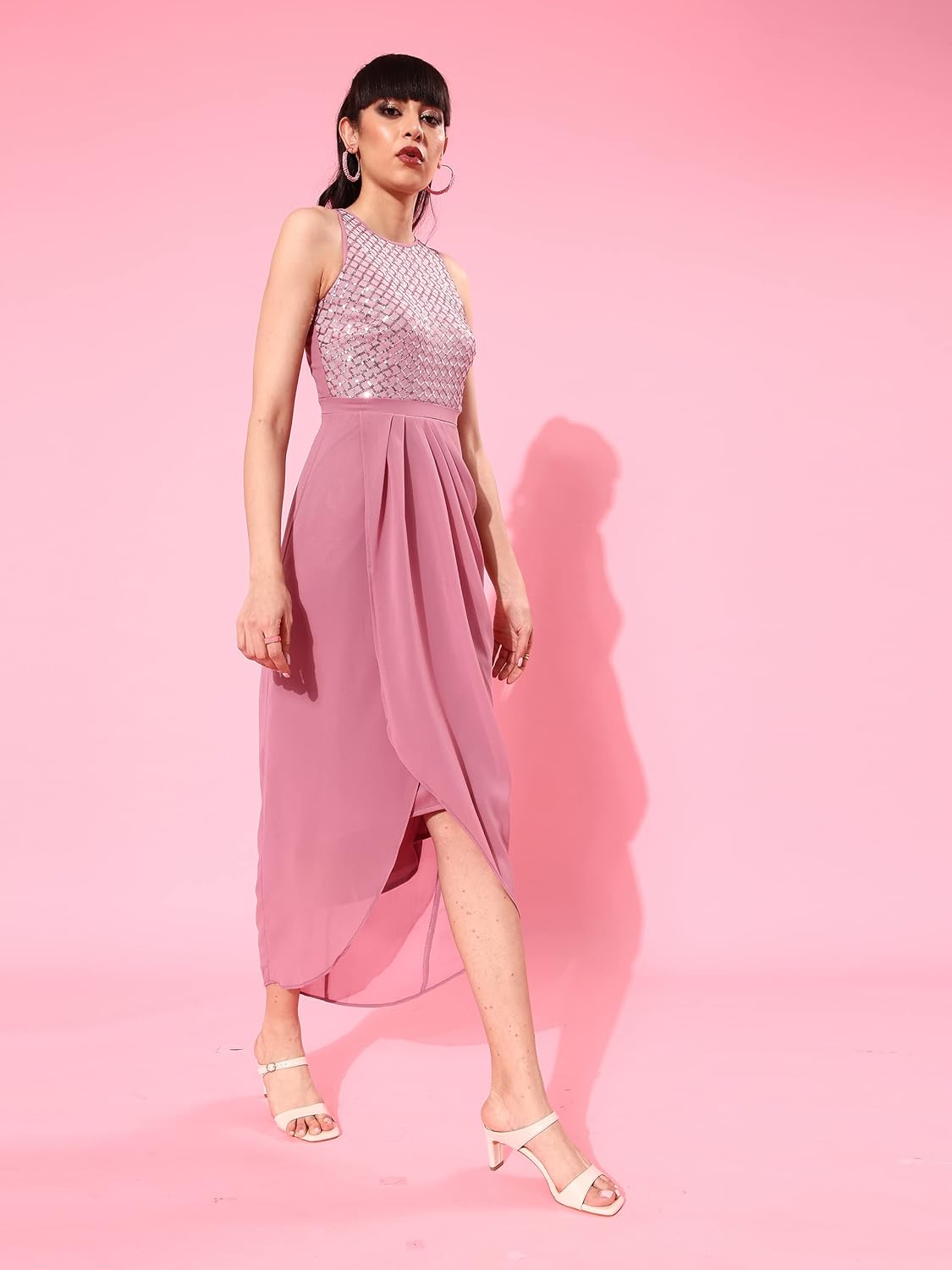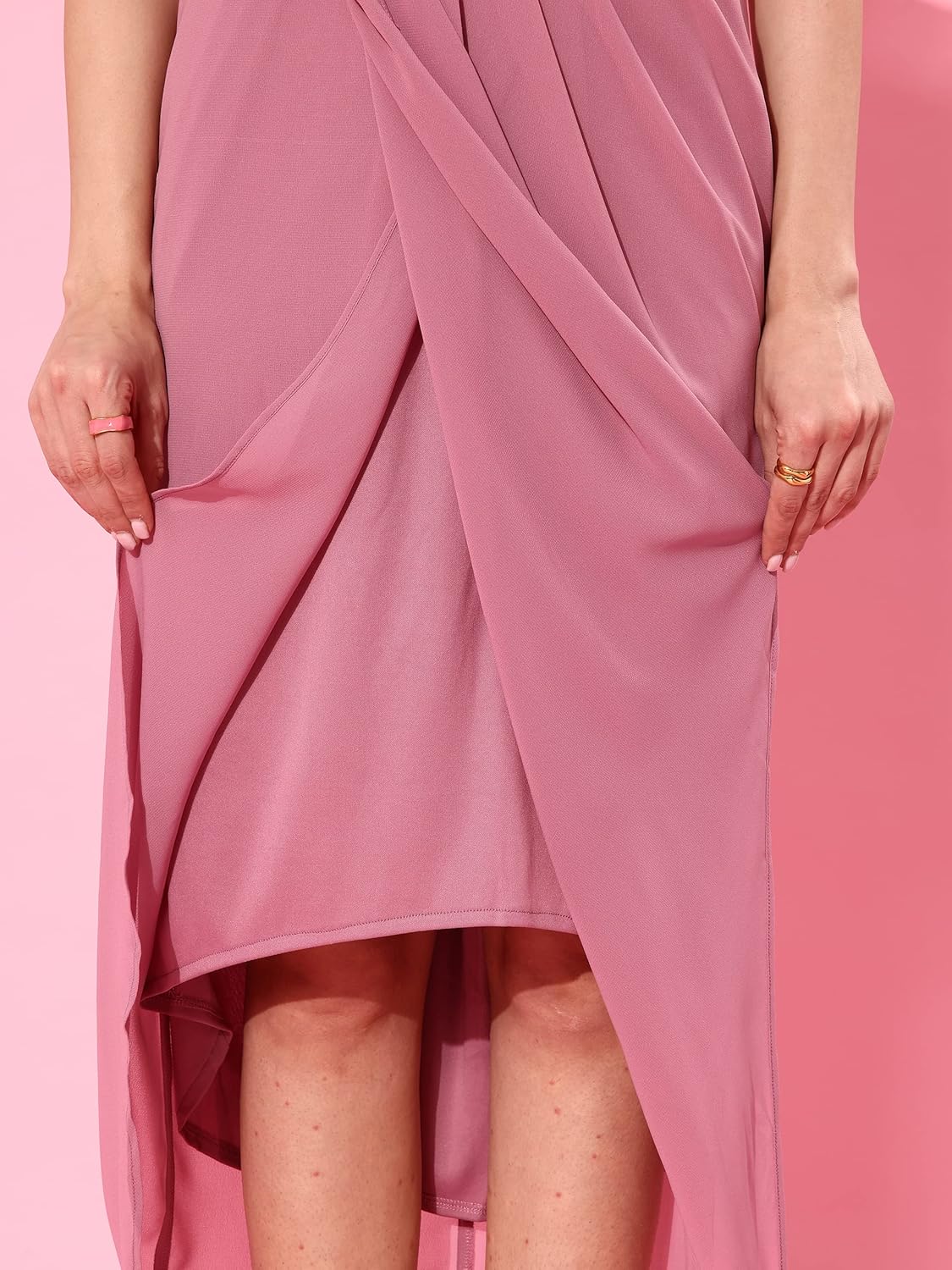 - Fit: Relaxed Fit | Pattern: Embellished | Style: Wrap/Asymmetric/Embellished | Length: Midi | Neck Type:Round