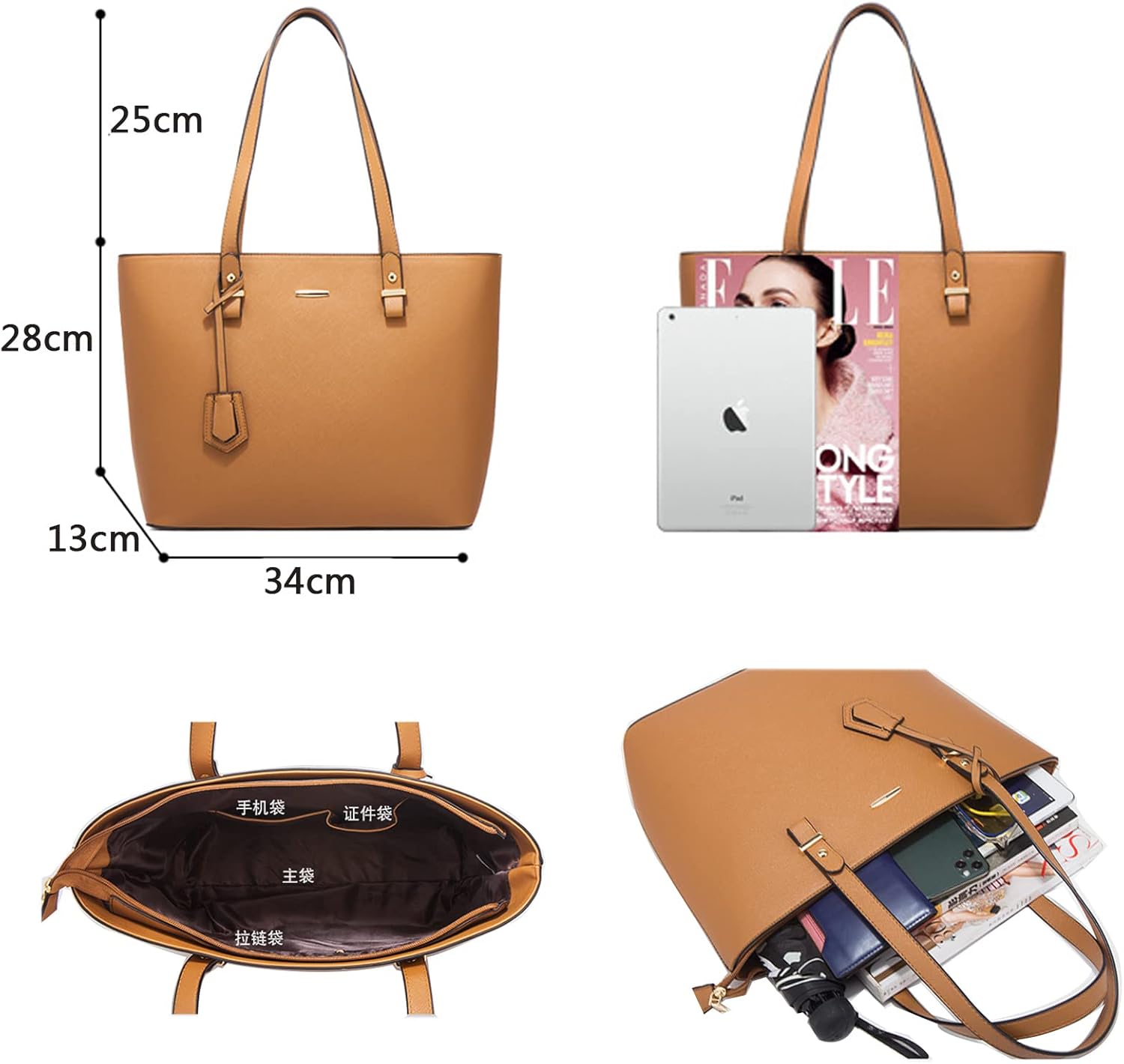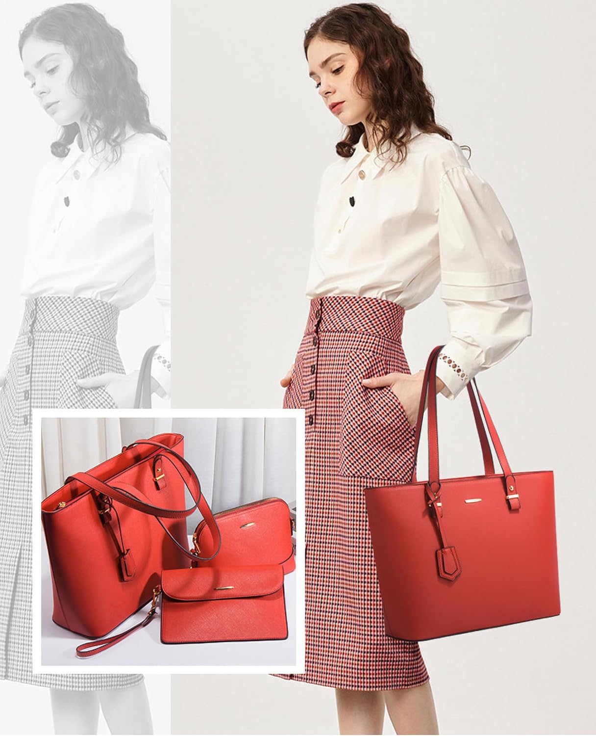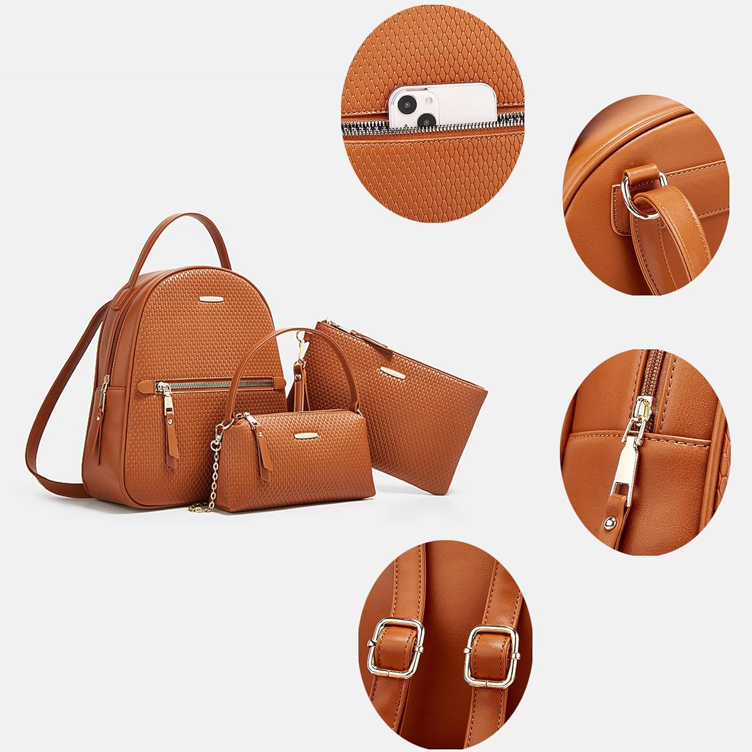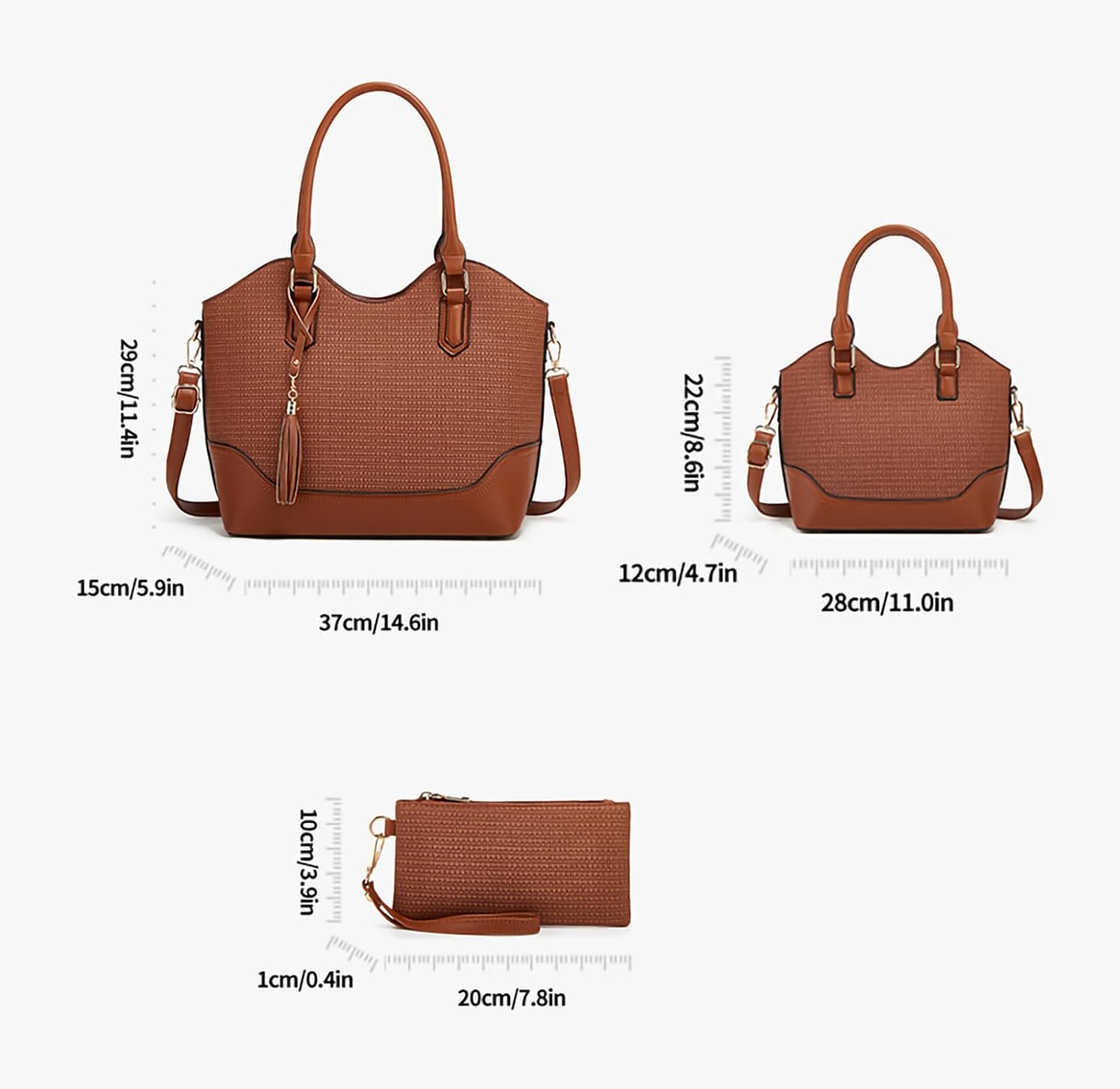 - Stylish Handbag Set: This set includes a large tote bag, zip around wallet, and crossbody shoulder bag, all crafted from premium vegan leather.
